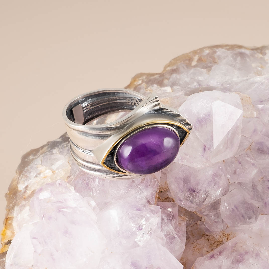 Аметист - камень чистоты и преданности. Во все времена он был символом искренности и миролюбия. Его завораживающий лавандовый цвет способствует успокоению, очищению сознания, настраивает на умиротворение и гармонию.