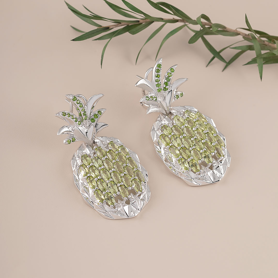 Серьги из серебра с хризолитом, хромдиопсидом