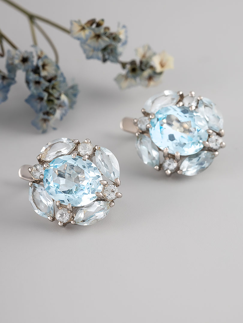Топаз - один из самых популярных драгоценных камней в ювелирном искусстве. По твердости он уступает только алмазу и корунду. Прозрачность и бриллиантовый блеск граней делают его удивительно привлекательным для коллекционеров. Название камень получил в честь острова Топазос в Красном море. Люди знали этот камень еще в древние времена. Так, Библия гласит, что топаз составлял часть украшения первосвященника Аарона. Королевские дворы Европы также выбирали этот камень для ювелирных коллекций. Известен, например, камень “Браганза“, входящий в число регалий португальской короны. Цветовая гамма этого драгоценного камня разнообразна: существуют розовые, желтые, голубые, фиолетовые, винные топазы. Голубые топазы принято разделять на три категории в зависимости от интенсивности окраски (обычно достигаемой за счет облучения): Sky Blue - небесно-голубые, Swiss Blue - швейцарские, с более насыщенным цветом, и London Blue - лондонские, с наиболее глубоким оттенком синевы.