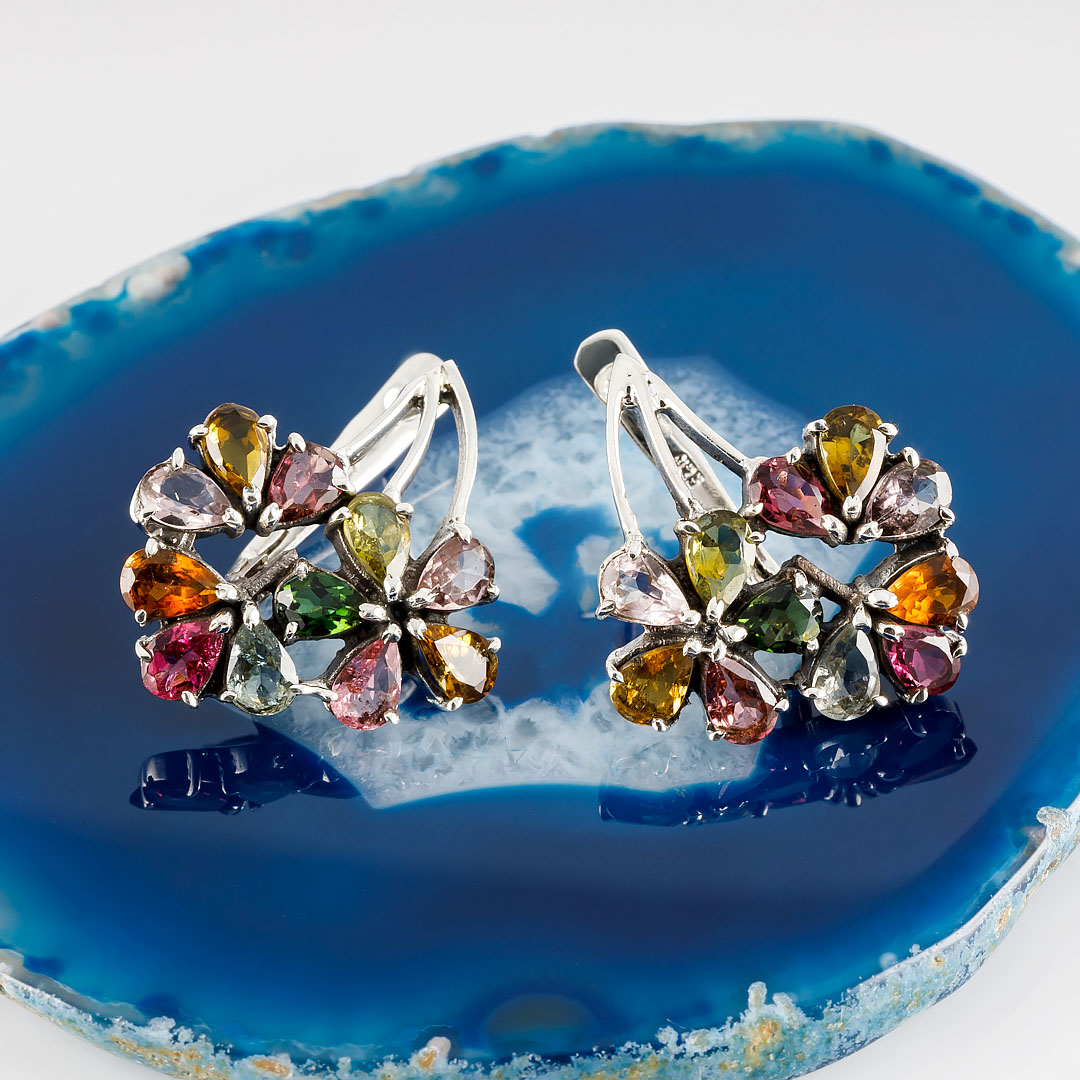 Серьги из серебра с турмалином