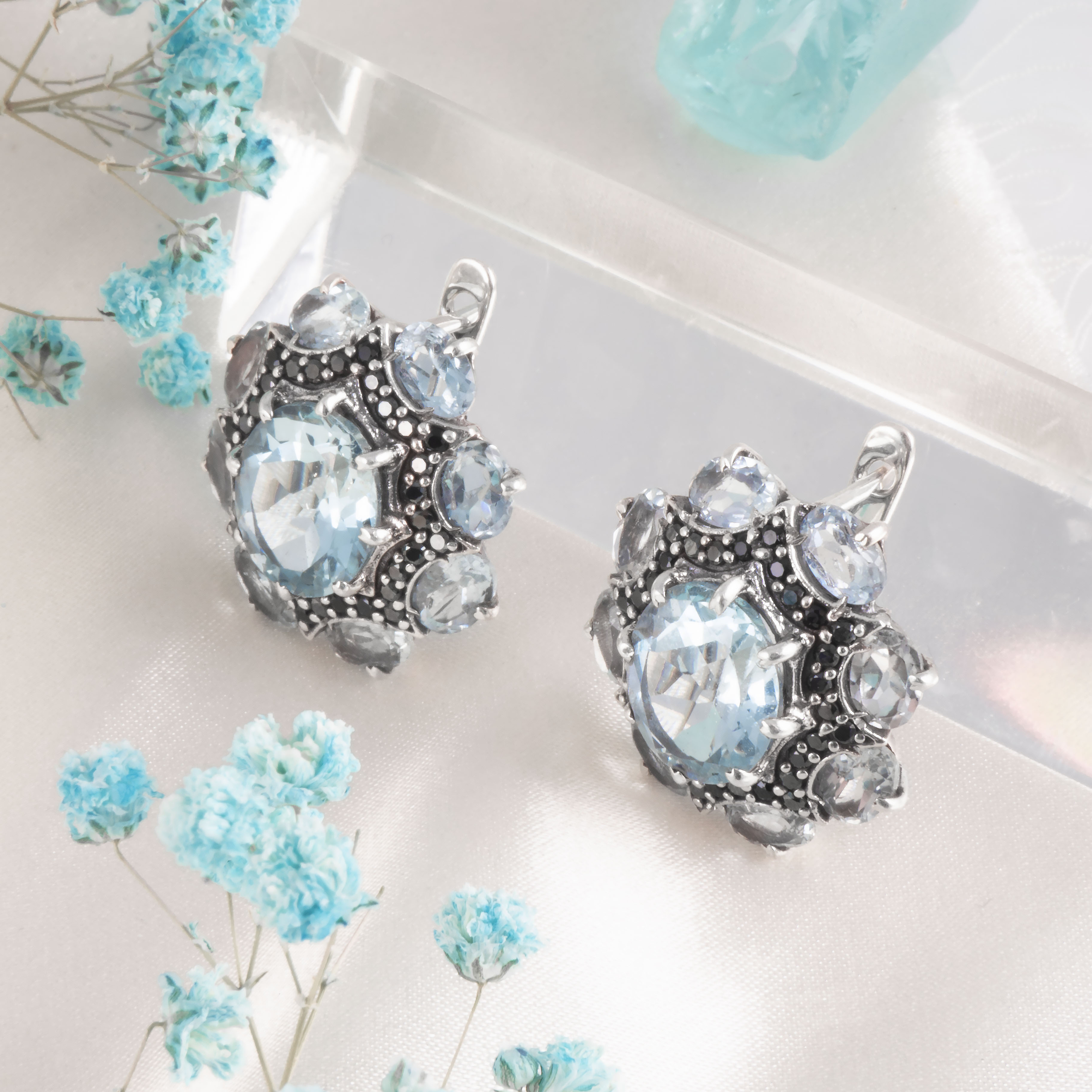 Топаз - один из самых популярных драгоценных камней в ювелирном искусстве. По твердости он уступает только алмазу и корунду. Прозрачность и бриллиантовый блеск граней делают его удивительно привлекательным для коллекционеров. Название камень получил в честь острова Топазос в Красном море. Люди знали этот камень еще в древние времена. Так, Библия гласит, что топаз составлял часть украшения первосвященника Аарона. Королевские дворы Европы также выбирали этот камень для ювелирных коллекций. Известен, например, камень “Браганза“, входящий в число регалий португальской короны. Цветовая гамма этого драгоценного камня разнообразна: существуют розовые, желтые, голубые, фиолетовые, винные топазы. Голубые топазы принято разделять на три категории в зависимости от интенсивности окраски (обычно достигаемой за счет облучения): Sky Blue - небесно-голубые, Swiss Blue - швейцарские, с более насыщенным цветом, и London Blue - лондонские, с наиболее глубоким оттенком синевы.