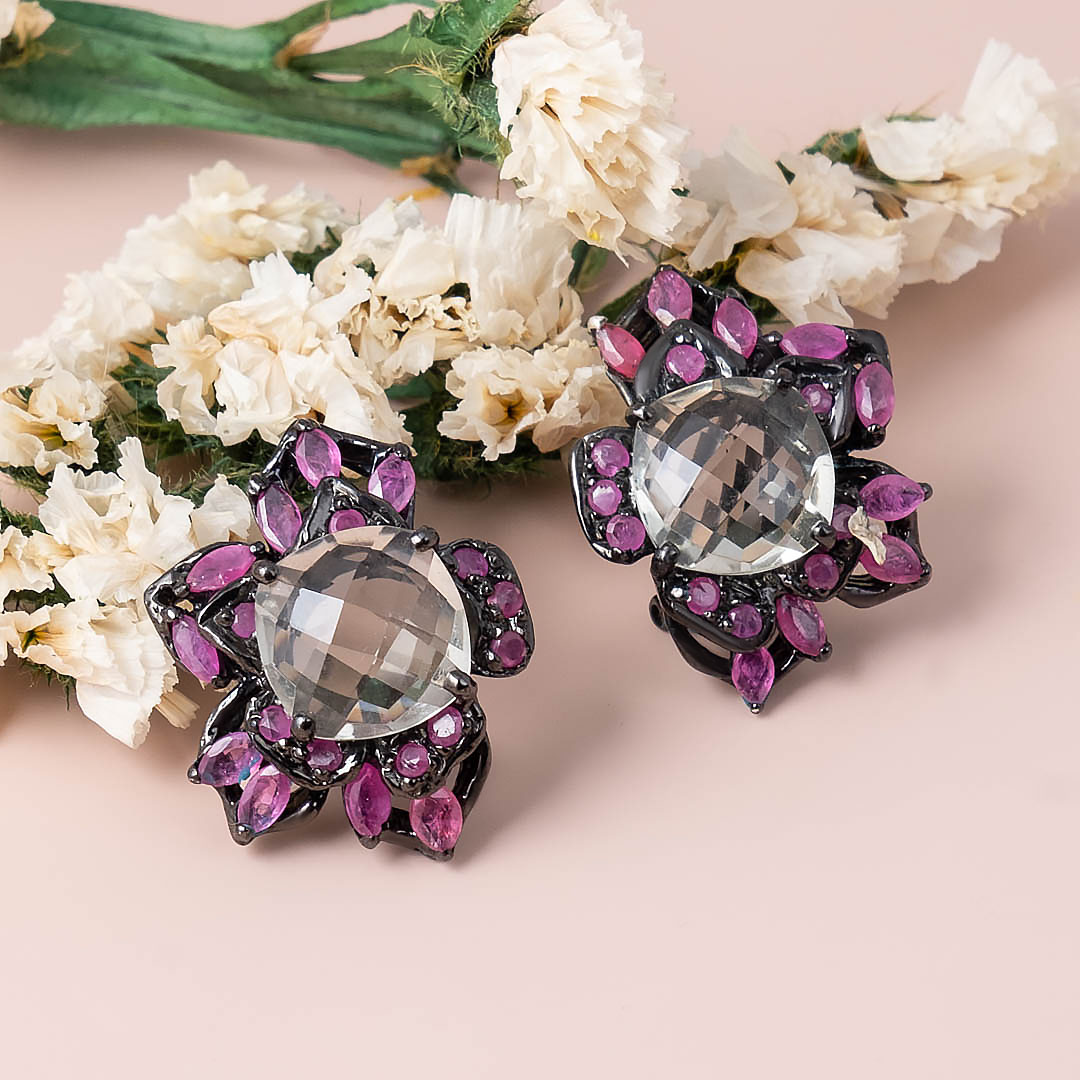 Серьги из серебра с празиолитом, рубином