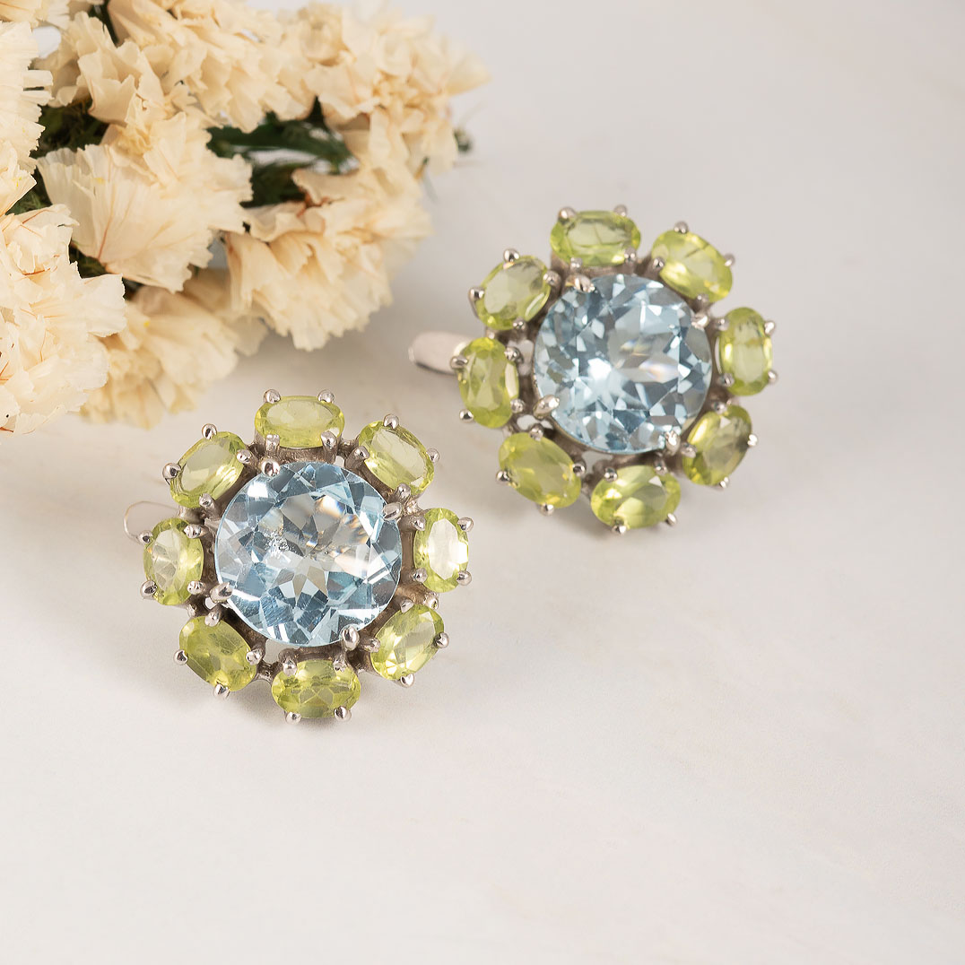 Топаз - один из самых популярных драгоценных камней в ювелирном искусстве. По твердости он уступает только алмазу и корунду. Прозрачность и бриллиантовый блеск граней делают его удивительно привлекательным для коллекционеров. Название камень получил в честь острова Топазос в Красном море. Люди знали этот камень еще в древние времена. Так, Библия гласит, что топаз составлял часть украшения первосвященника Аарона. Королевские дворы Европы также выбирали этот камень для ювелирных коллекций. Известен, например, камень “Браганза“, входящий в число регалий португальской короны. Цветовая гамма этого драгоценного камня разнообразна: существуют розовые, желтые, голубые, фиолетовые, винные топазы. Голубые топазы принято разделять на три категории в зависимости от интенсивности окраски (обычно достигаемой за счет облучения): Sky Blue - небесно-голубые, Swiss Blue - швейцарские, с более насыщенным цветом, и London Blue - лондонские, с наиболее глубоким оттенком синевы.