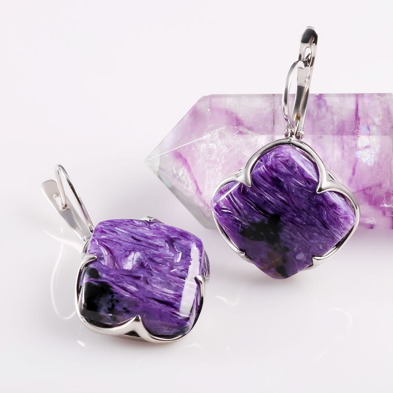 Чароит - “сиреневое чудо Сибири“, один из самых редких самоцветов в мире. Единственное его месторождение находится в долине реки Чара, на границе Иркутской области и Якутии, в честь которой он и получил свое название. Найден он был в середине XX века, и с тех пор стал одним из любимых ювелирных камней благодаря своему необыкновенному сиренево-фиалковому цвету. Удивительны узоры на поверхности камня: на гладко отполированном чароите можно любоваться красивыми переливами, которые “разбегаются“ из центра. Этот камень славится также нежным шелковистым блеском, придающим особое очарование и мягкость сиреневому минералу.