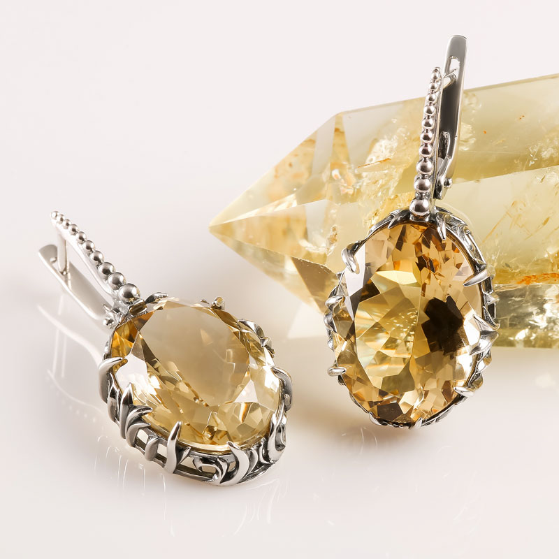 Серьги из серебра с цитрином