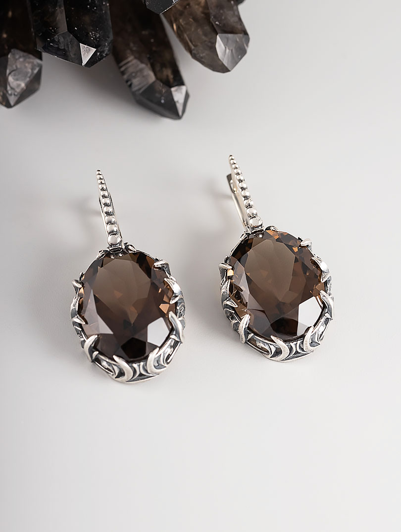 Серьги из серебра с раухтопазом (дымчатый кварц)