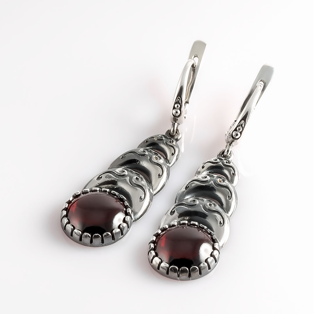Серьги из серебра с аквамарином, гранатом, аметистом