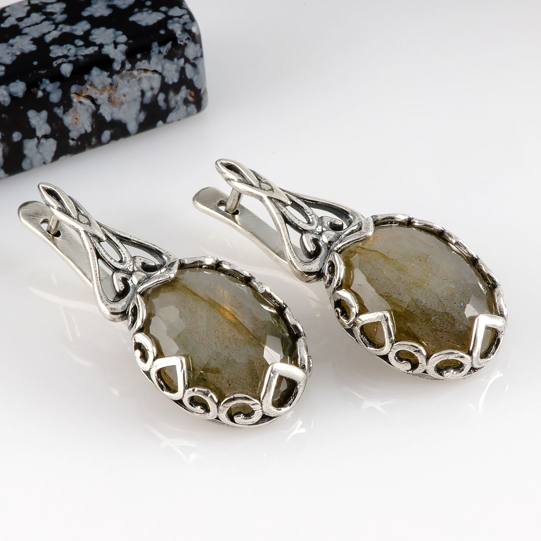 Серьги из серебра с лабрадором