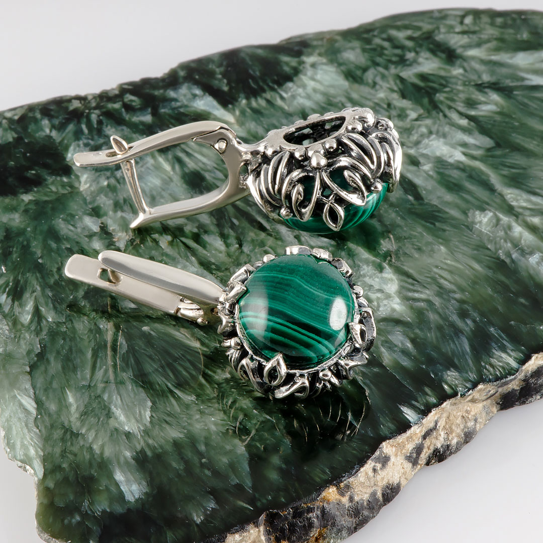 Серьги из серебра с малахитом
