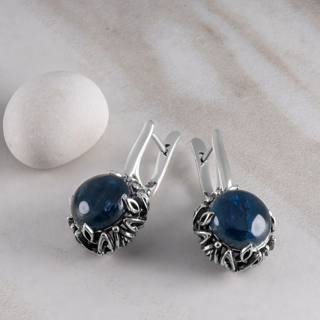 Кианит привлекает своим насыщенным цветом и необычной “слоистой“ структурой, делающей его похожим на леденец. Название произошло от греческого “kyanos“ - “синий“, и действительно, чаще всего этот камень радует глаз всеми оттенками океанической волны: от глубокой синевы до нежной лазури. Прозрачные кианиты поэтому можно принять за сапфиры. Однако, встречаются и желтые, и зеленые, похожие на изумруды, камни. Особенно красив кианит в серебре - глубокий синий цвет отлично гармонирует с холодностью белого металла.