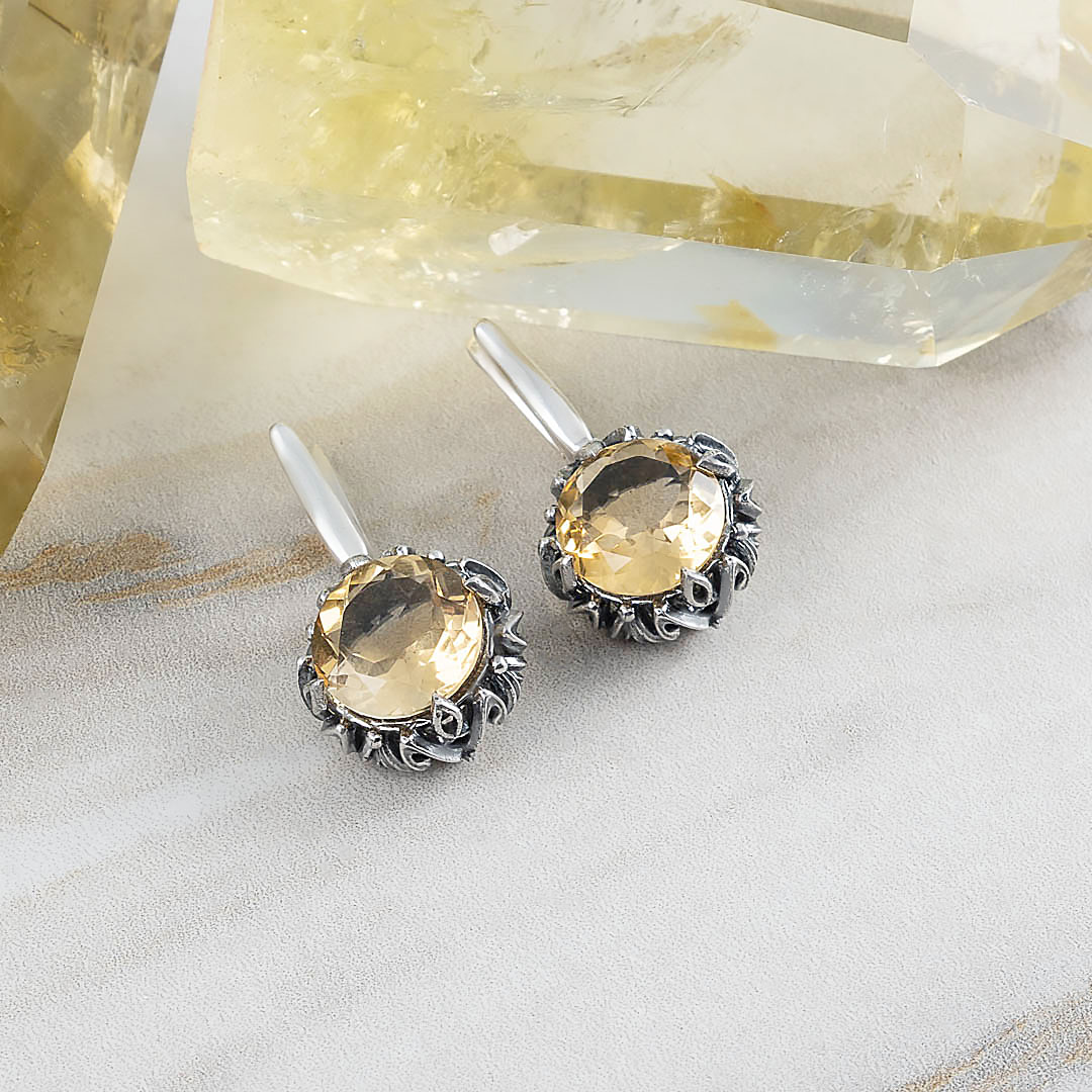 Серьги из серебра с цитрином