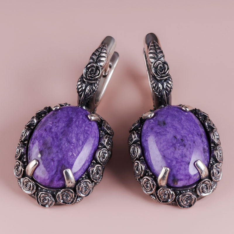 Серьги из серебра с чароитом