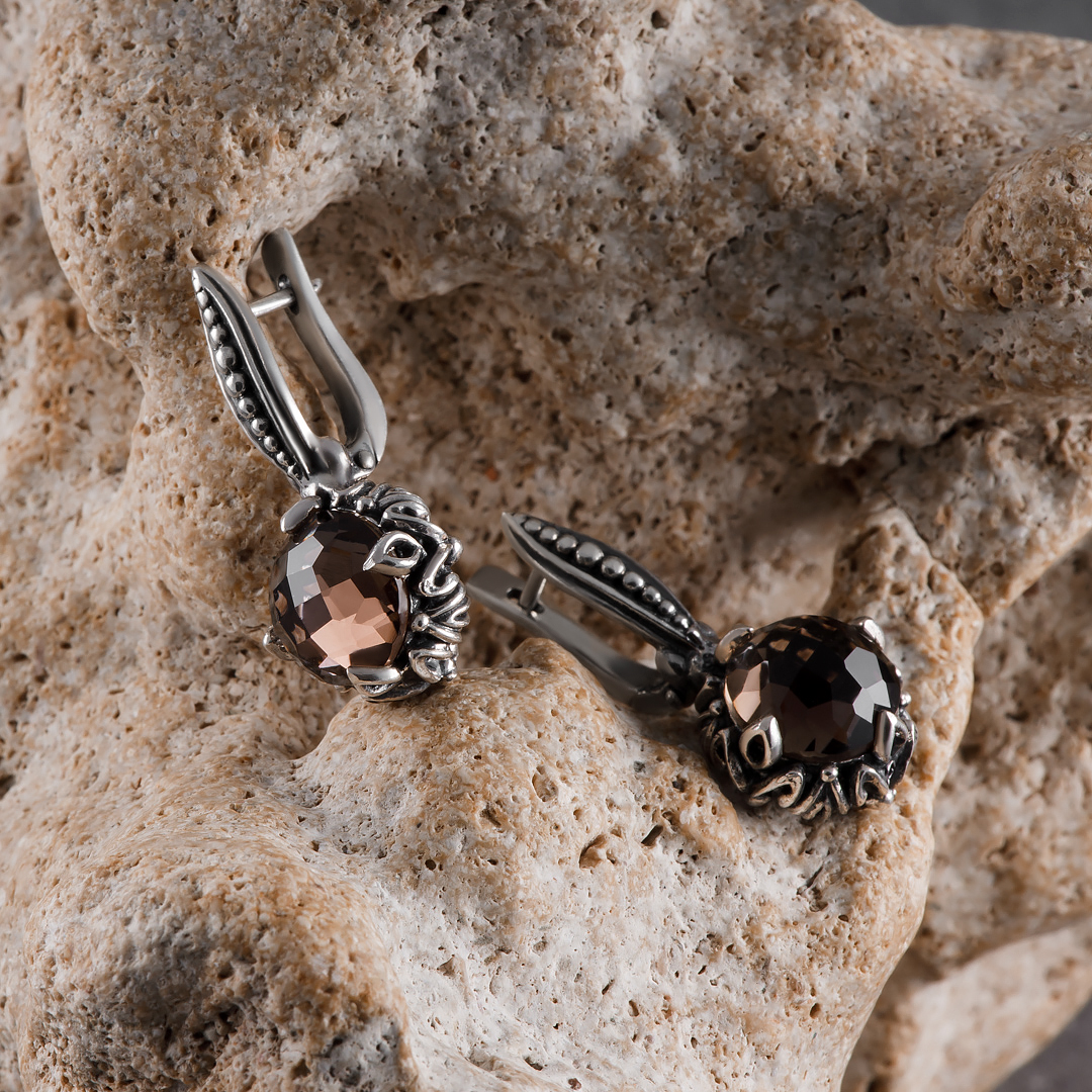 Серьги из серебра с раухтопазом (дымчатый кварц)