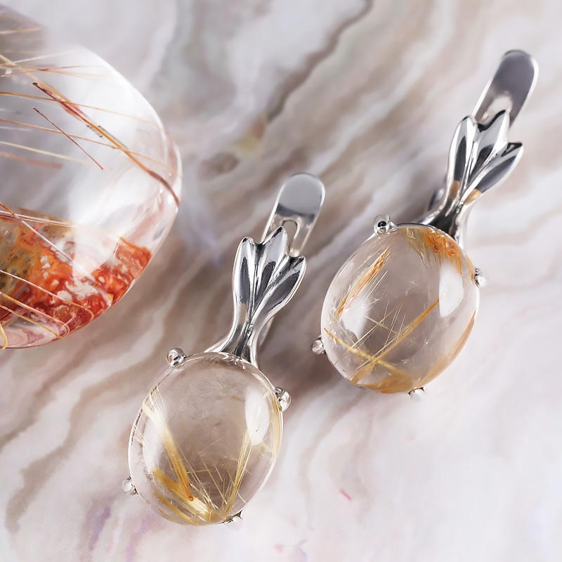 Рутиловый кварц - любимый камень коллекционеров-минералогов. Игольчатые включения рутила образуют внутри прозрачного кристалла кварца причудливые узоры. Прямые темные линии называют “стрелами Амура“, а золотистые - “волосами Венеры“. И действительно, они как будто символизируют мужское и женское начала. Золотистые линии так напоминают волосы богинь, сошедших с полотен Боттичелли, а черные - рождают ассоциации с благородными рыцарями.