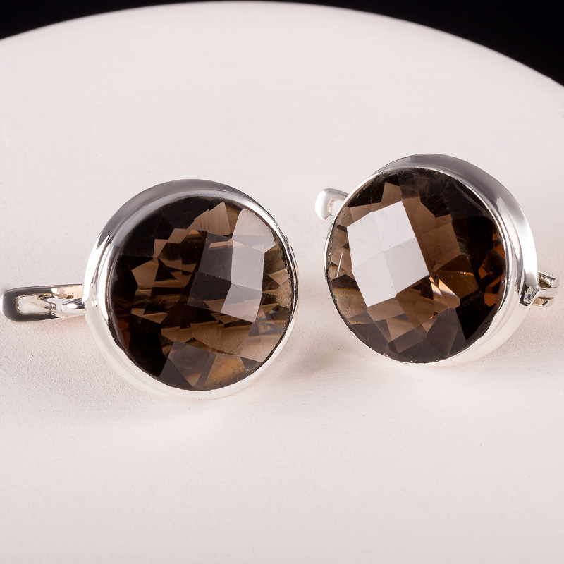 Серьги из серебра с раухтопазом (дымчатый кварц)