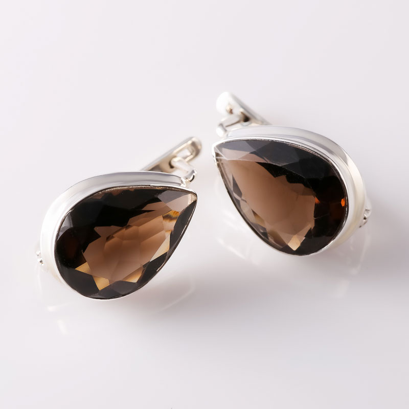 Серьги из серебра с раухтопазом (дымчатый кварц)