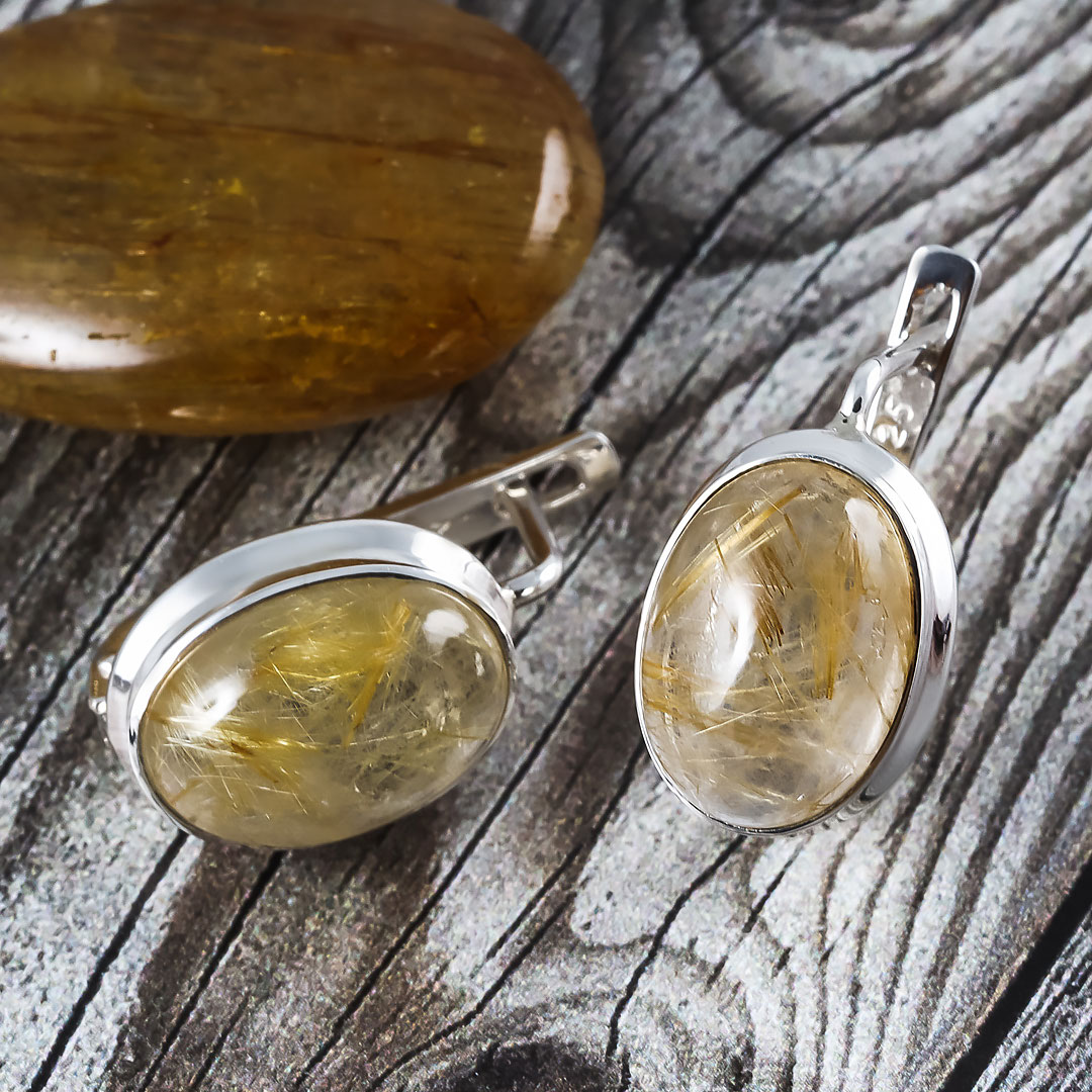 Серьги из серебра с рутиловым кварцем (волосатик)