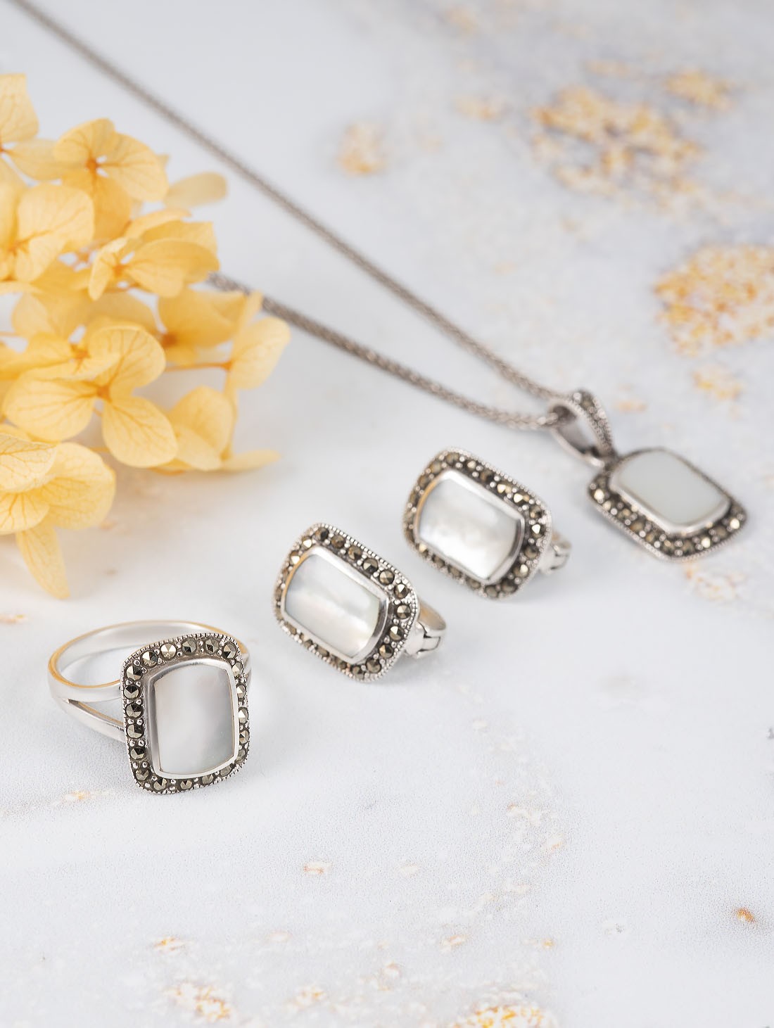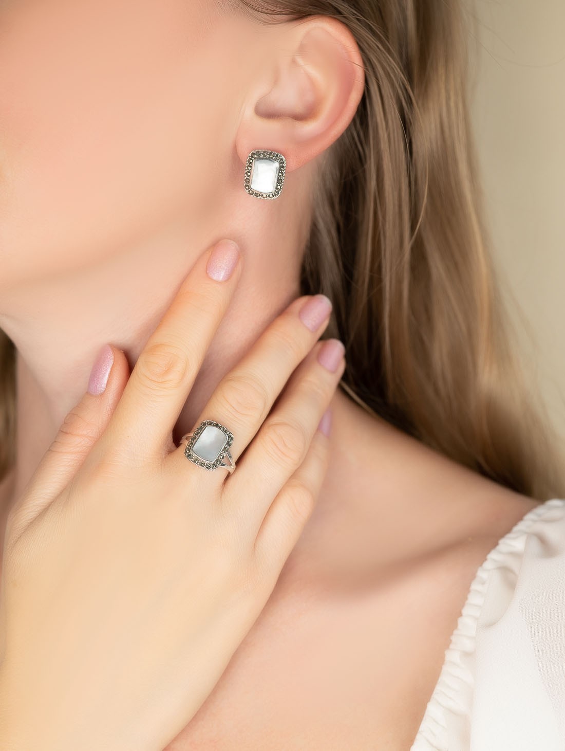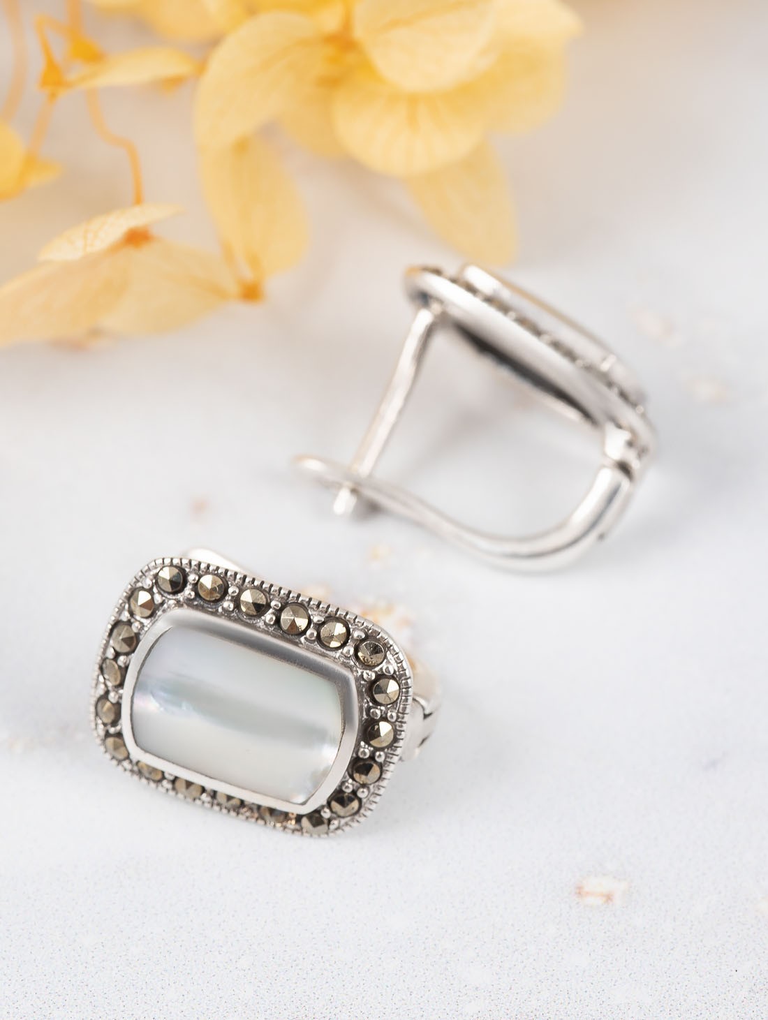 Серьги из серебра с перламутром, марказитом