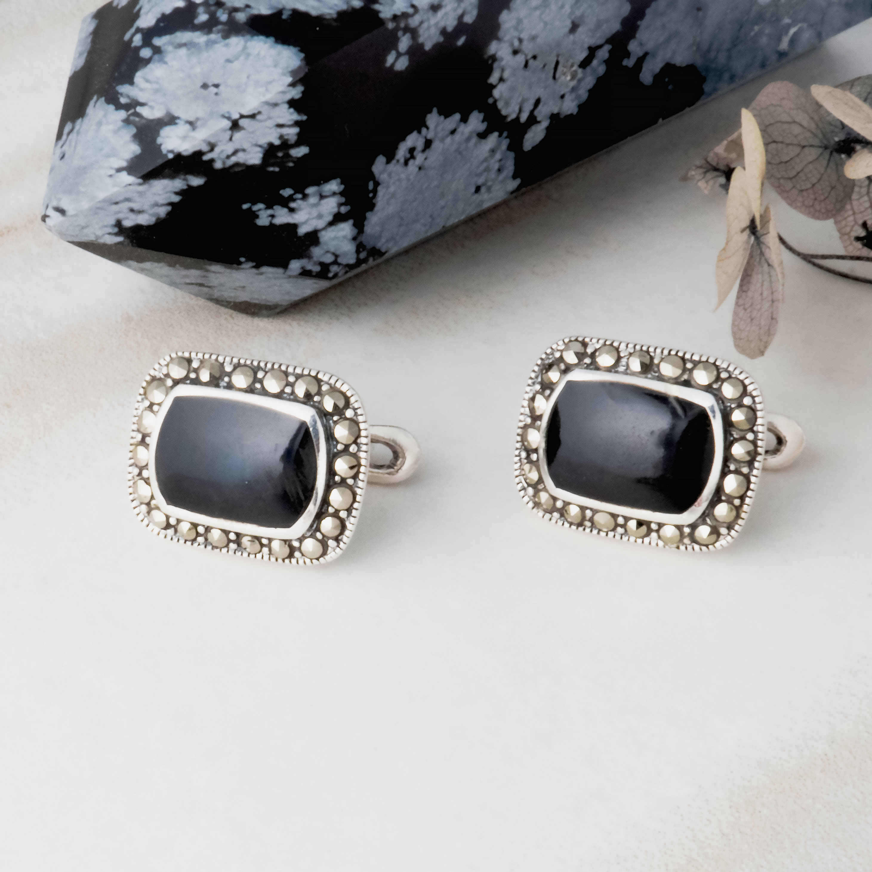 Серьги из серебра с агатом, марказитом