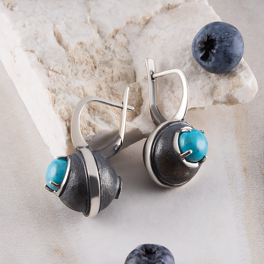 1213 Бирюза Серьги (Ag 925)