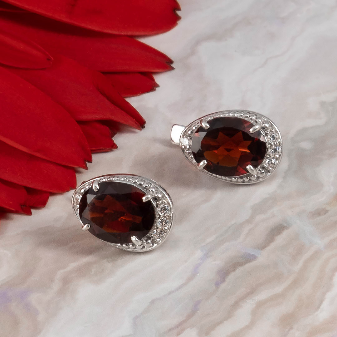 Серьги из серебра с гранатом, фианитом