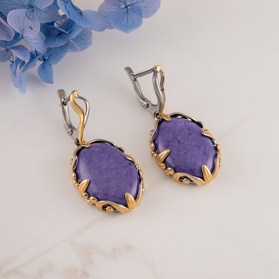 Серьги из серебра с чароитом
