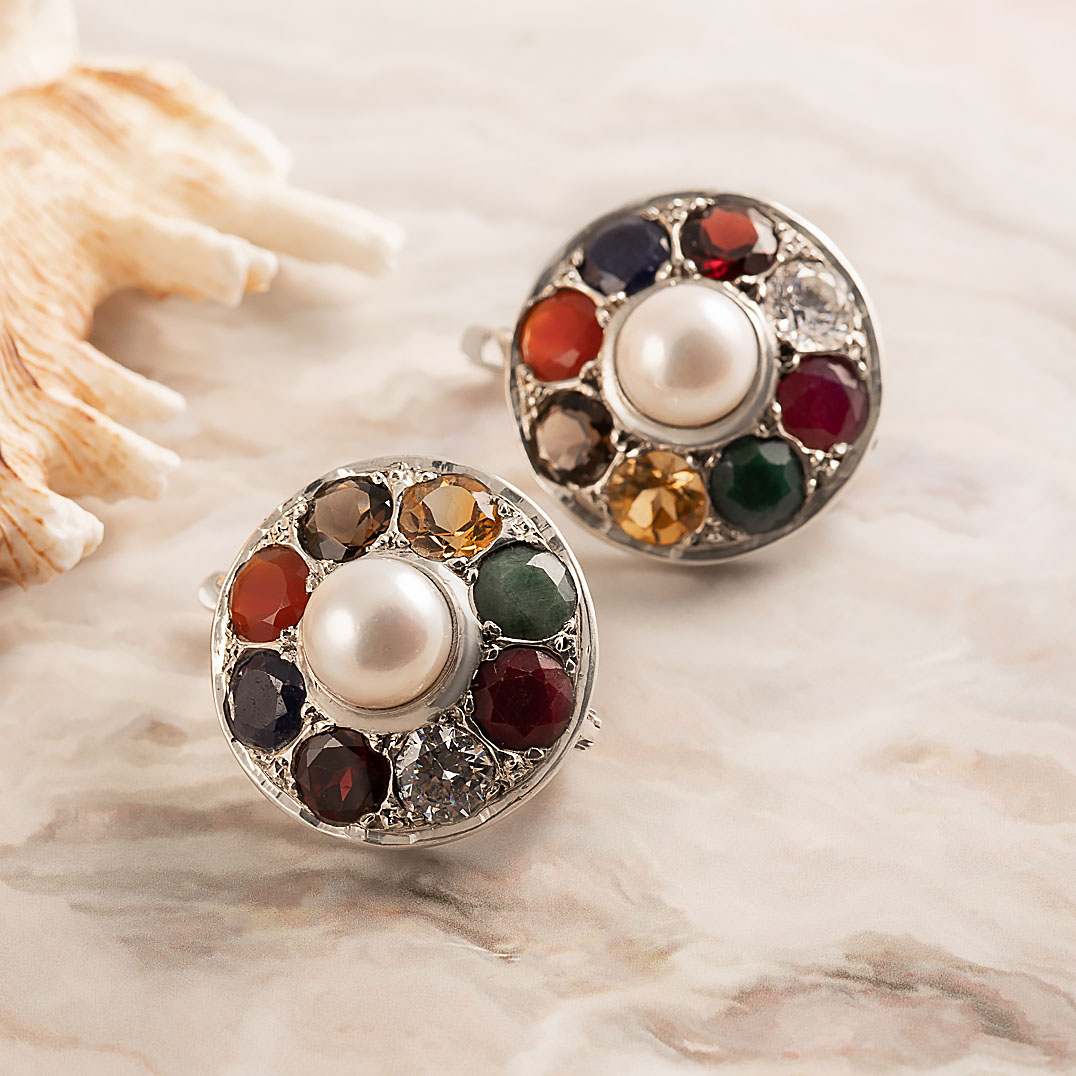 Серьги из серебра с цитрином, изумрудом, сапфиром, гранатом, жемчугом, горным хрусталём