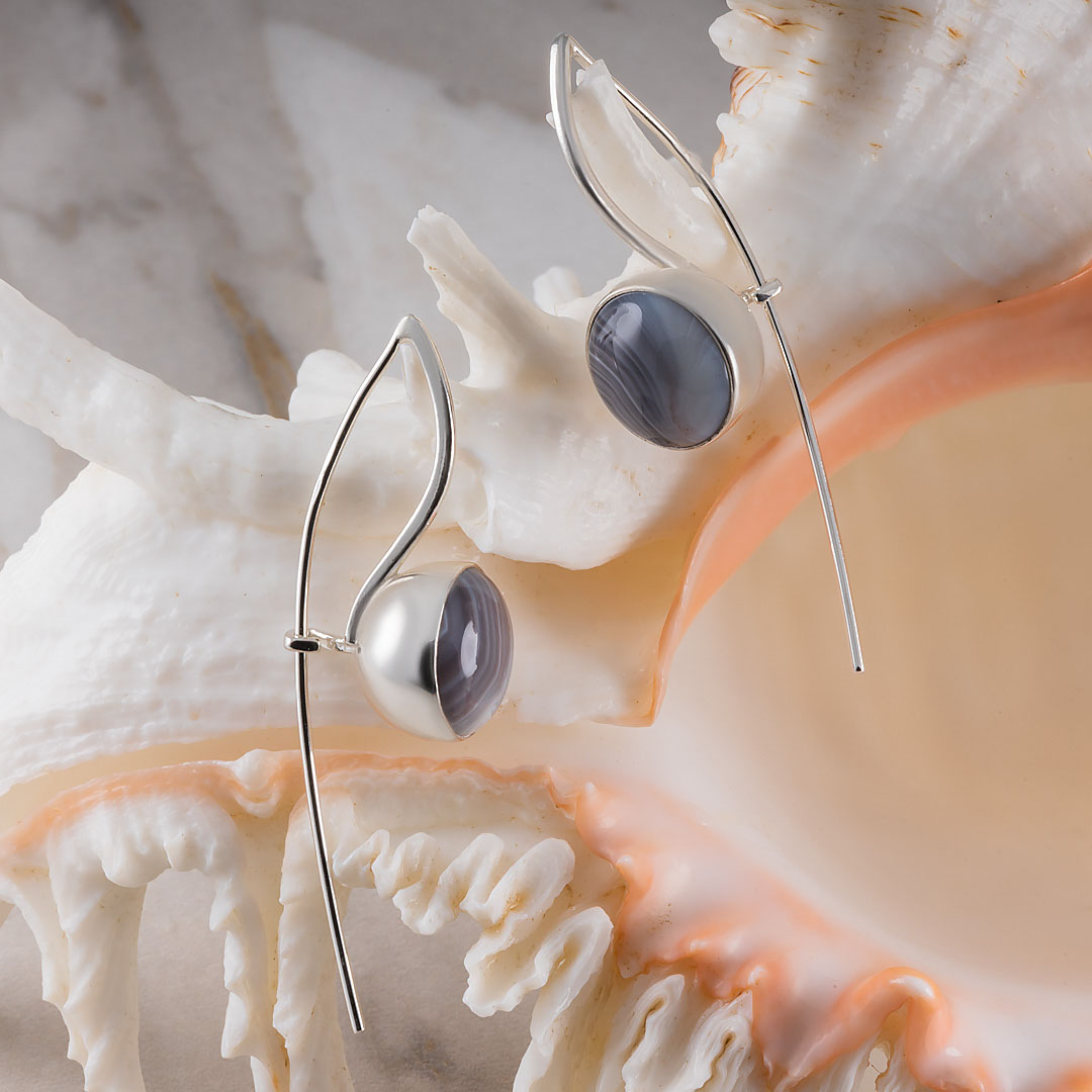 Агат - разновидность халцедона, имеющий красивую слоистую окраску. Формирование этого камня проходит в жеодах - природных пустотах, а слои часто вырастают вокруг них, повторяя своими очертаниями форму жеода. Название камня произошло от реки Ахатес на Сицилии, где происходила их добыча. По другой версии, агат получил название от греческого “ahates“ - “счастливый“. Каждый агат имеет неповторимый рисунок - целые пейзажи и картины, которые можно рассматривать бесконечно. В зависимости от того, увидите ли Вы в камне звездное небо или плывущие облака, агаты называют “пейзажными“, “звездчатыми“, “облачными“.