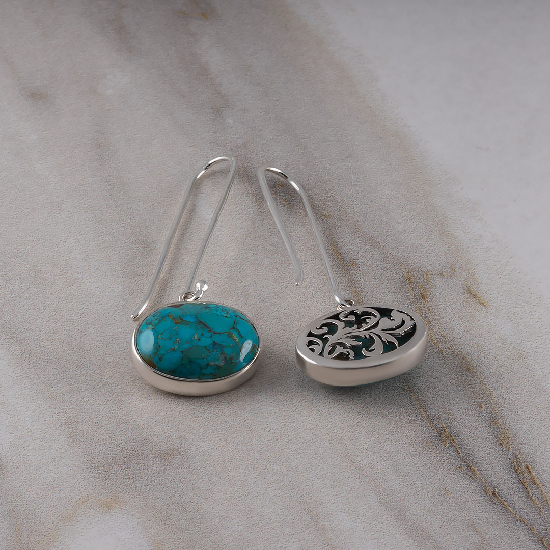 Бирюза, оправленная в серебро, способствует исцелению сердечно-сосудистой системы. Она укрепляет зрение, избавляет от бессонницы и ночных кошмаров. Также, она положительно влияет на щитовидную железу.