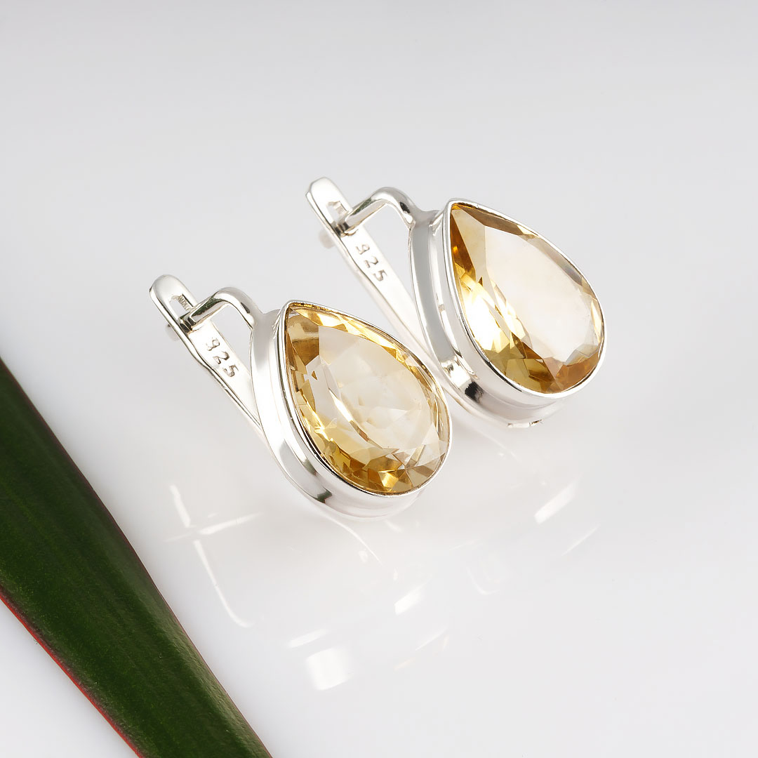 Серьги из серебра с цитрином