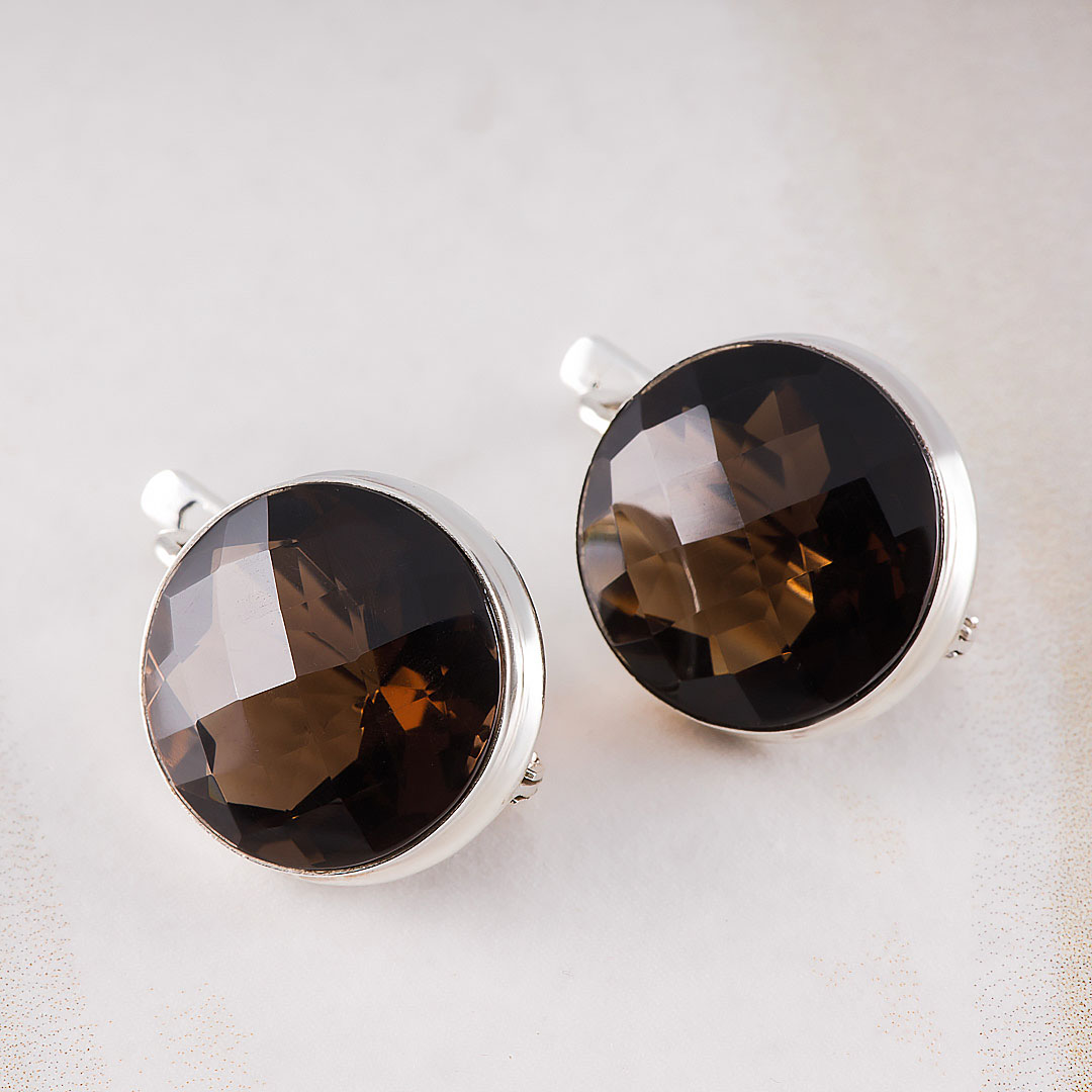 Серьги из серебра с раухтопазом (дымчатый кварц)