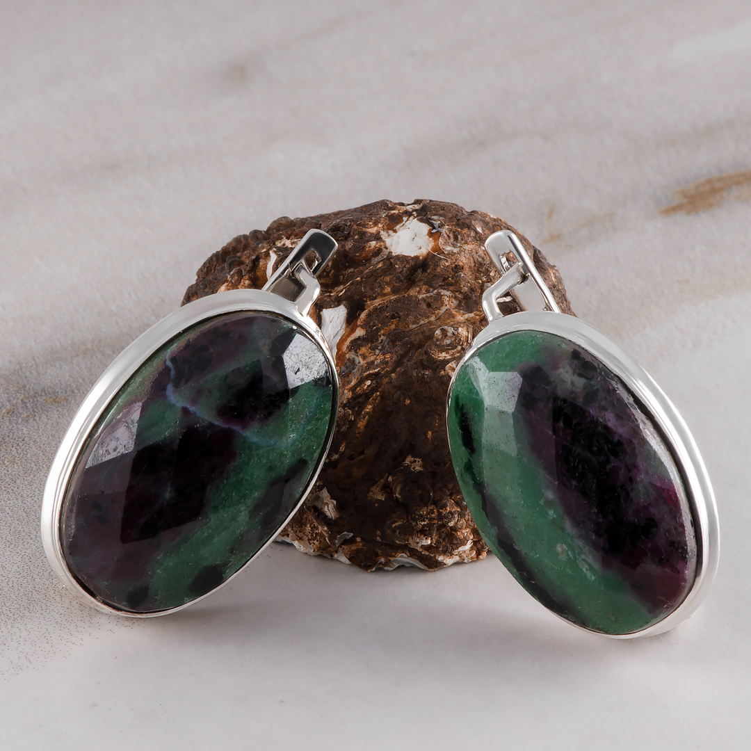 Серьги из серебра с цоизитом