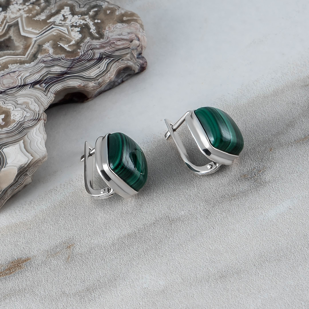 Серьги из серебра с малахитом