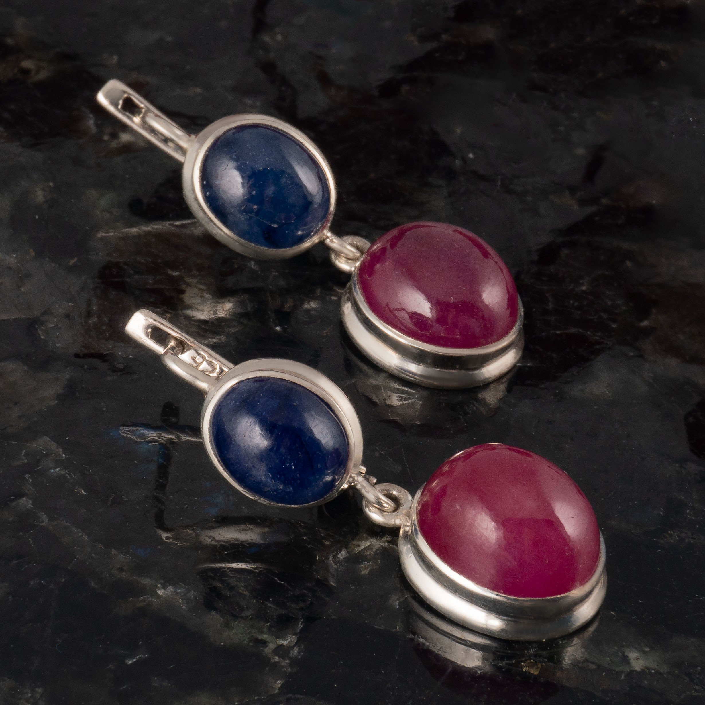Серьги из серебра с корундом