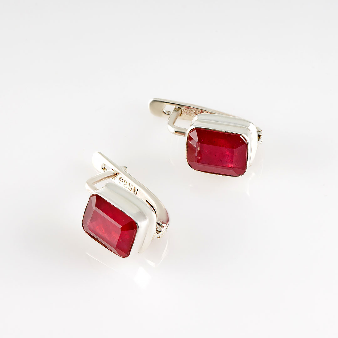 Серьги из серебра с рубином