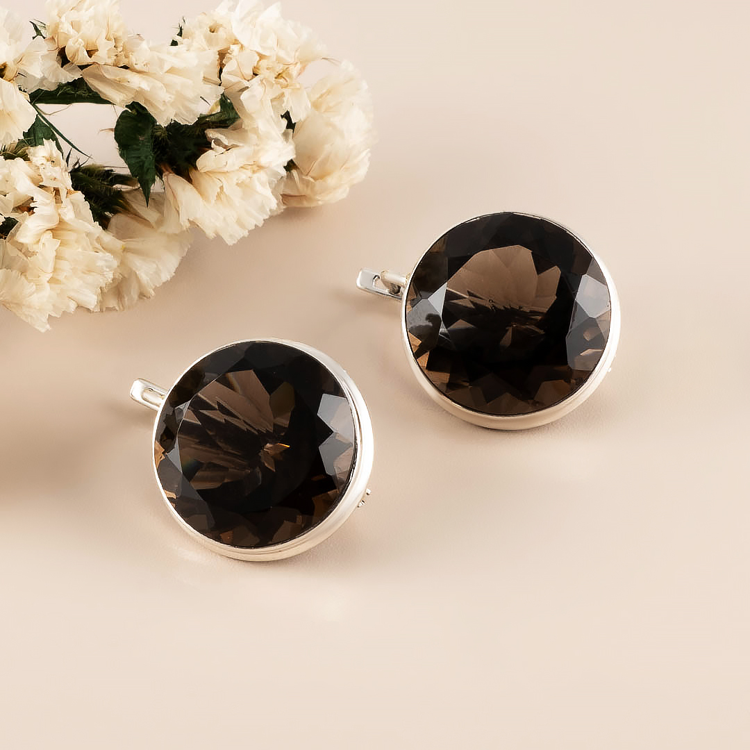 Серьги из серебра с раухтопазом (дымчатый кварц)