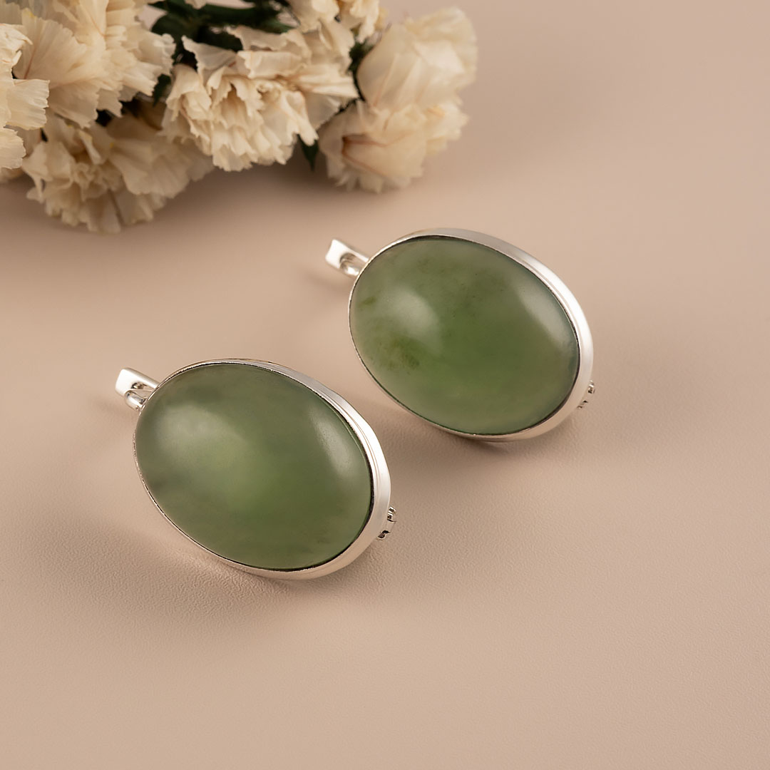 Серьги из серебра с нефритом