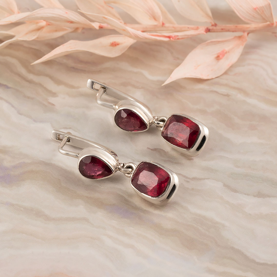 Серьги из серебра с корундом