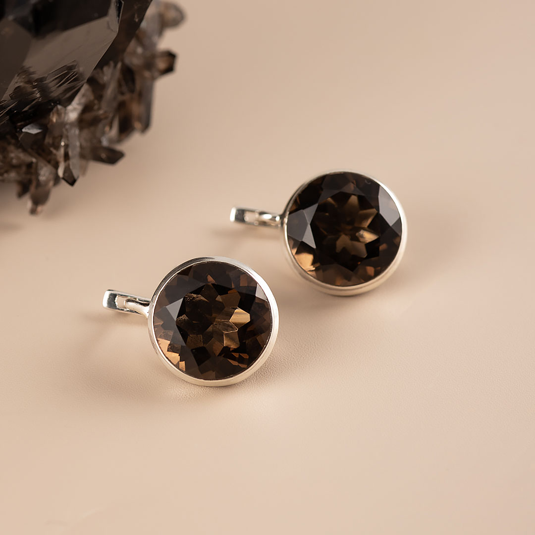 Серьги из серебра с раухтопазом (дымчатый кварц)