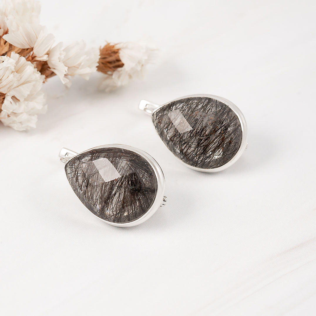 Серьги из серебра с рутиловым кварцем (волосатик)