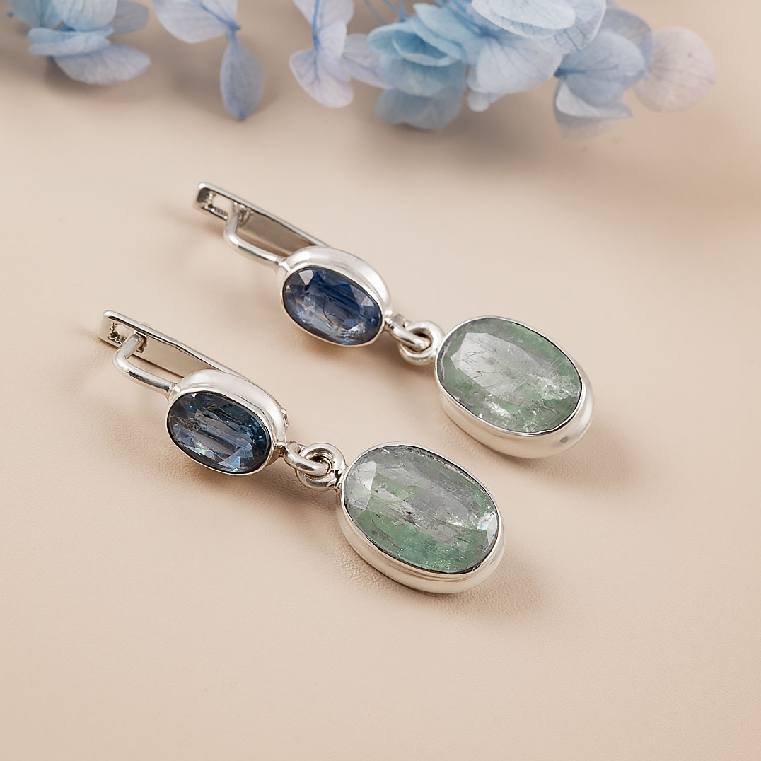 Кианит привлекает своим насыщенным цветом и необычной “слоистой“ структурой, делающей его похожим на леденец. Название произошло от греческого “kyanos“ - “синий“, и действительно, чаще всего этот камень радует глаз всеми оттенками океанической волны: от глубокой синевы до нежной лазури. Прозрачные кианиты поэтому можно принять за сапфиры. Однако, встречаются и желтые, и зеленые, похожие на изумруды, камни. Особенно красив кианит в серебре - глубокий синий цвет отлично гармонирует с холодностью белого металла.