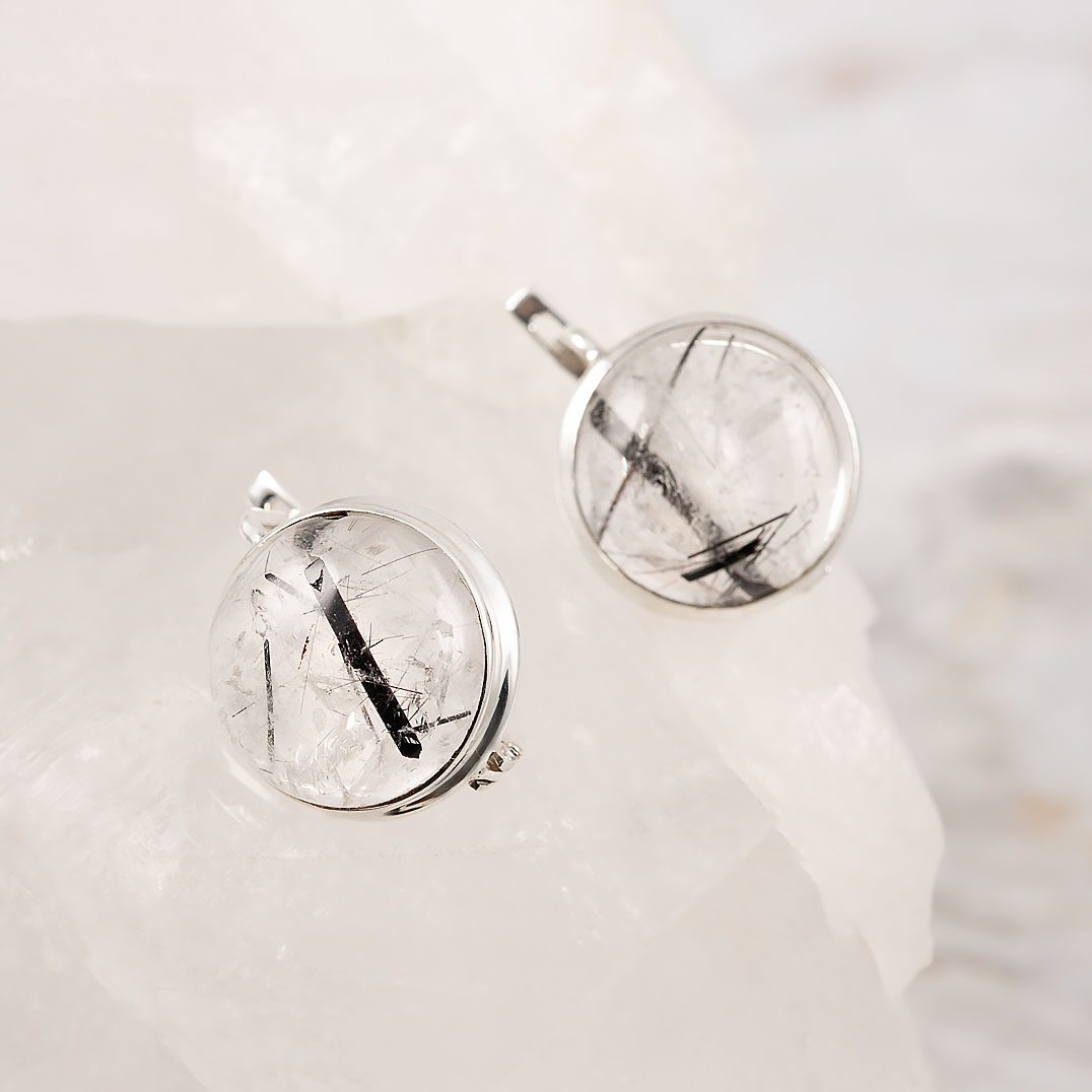Серьги из серебра с рутиловым кварцем (волосатик)