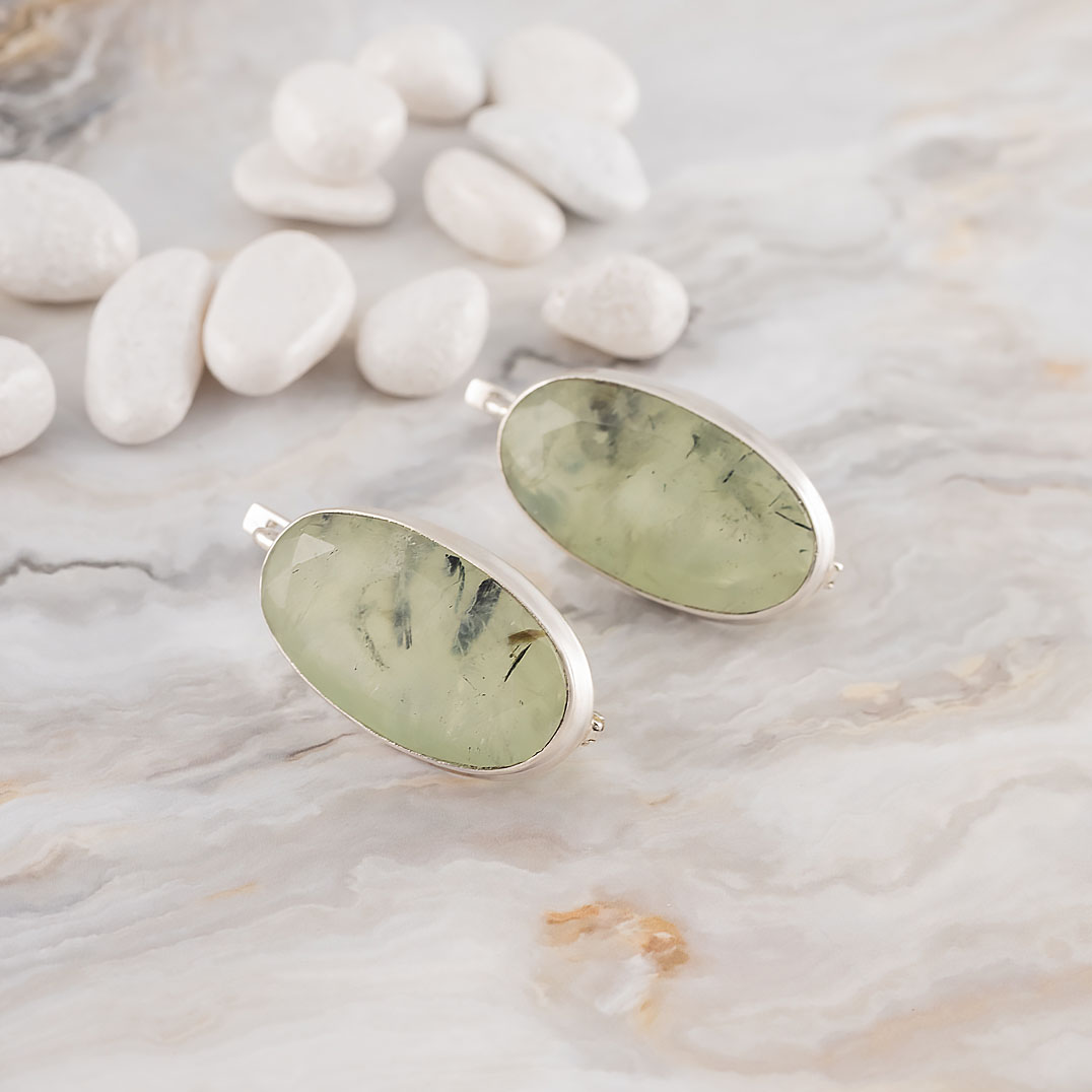 Серьги из серебра с пренитом