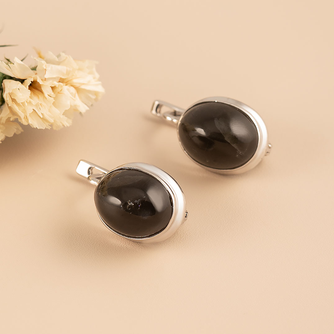 Серьги из серебра с кошачьим глазом