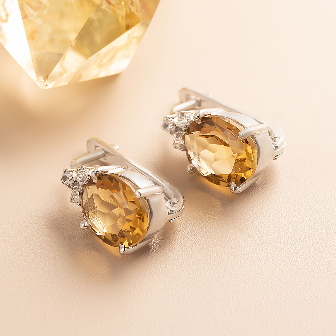 Серьги из серебра с кварцем, фианитом