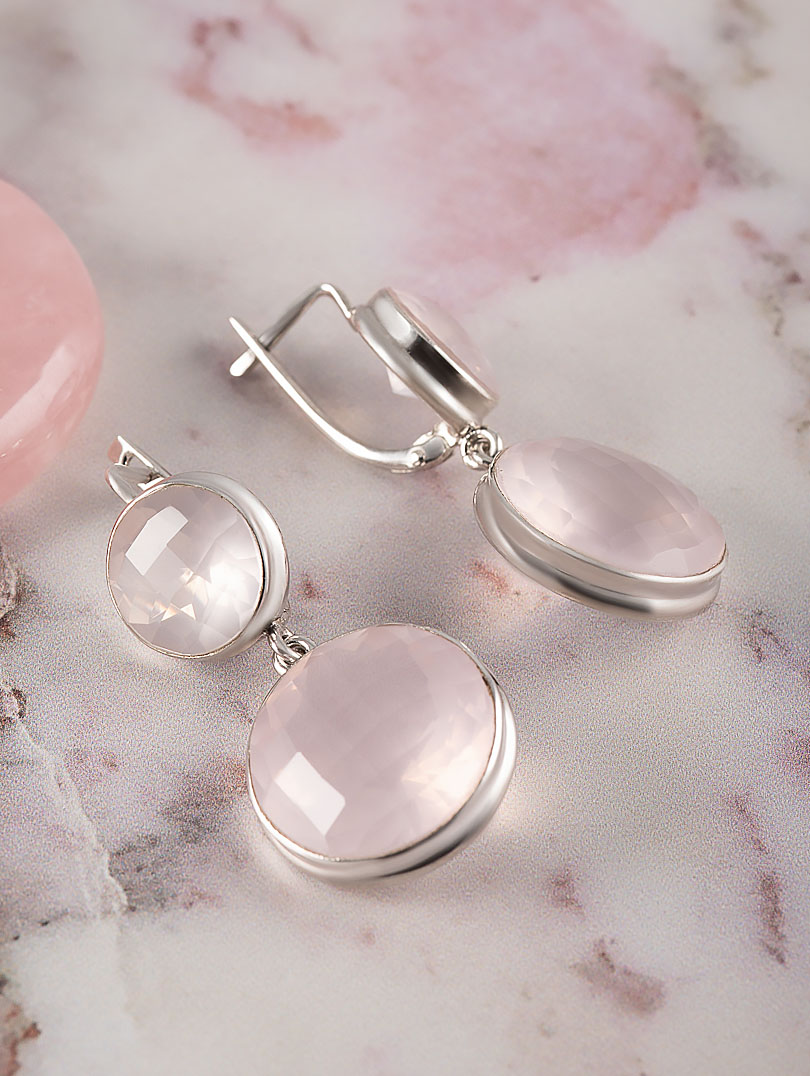 Серьги из серебра с розовым кварцем