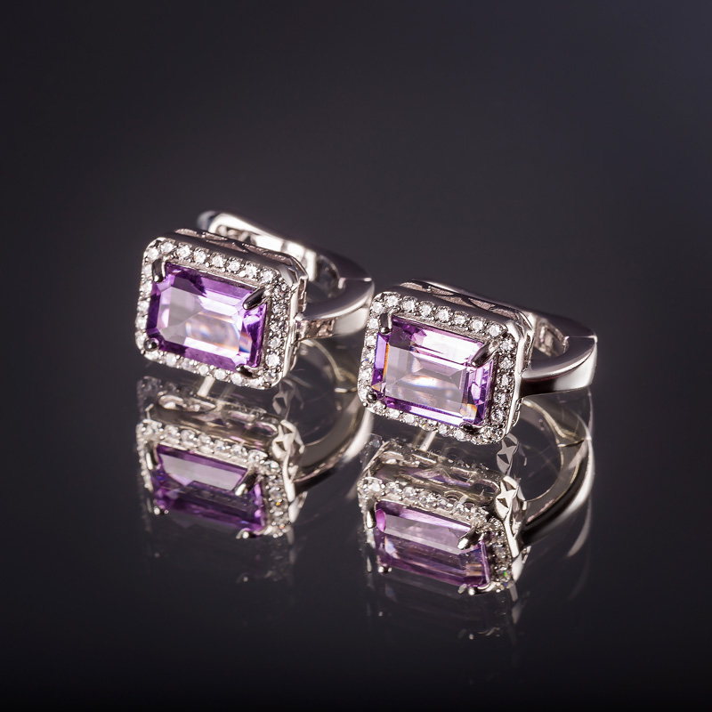 Серьги из серебра с аметистом, цирконом