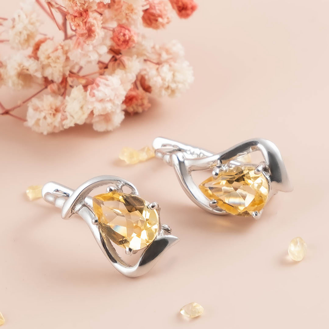 Серьги из серебра с цитрином