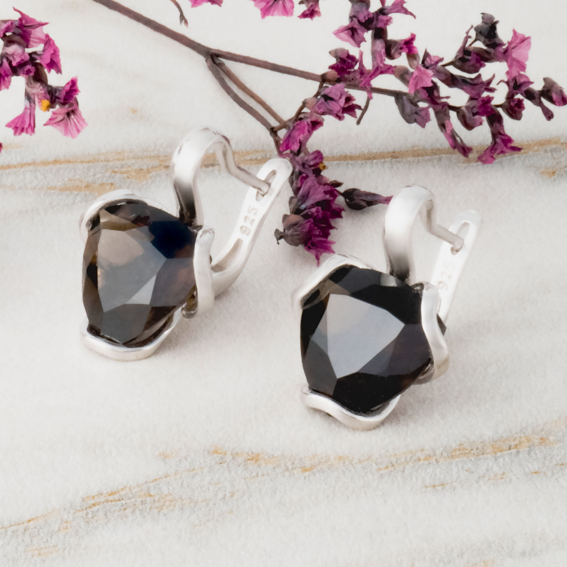 Серьги из серебра с раухтопазом (дымчатый кварц)