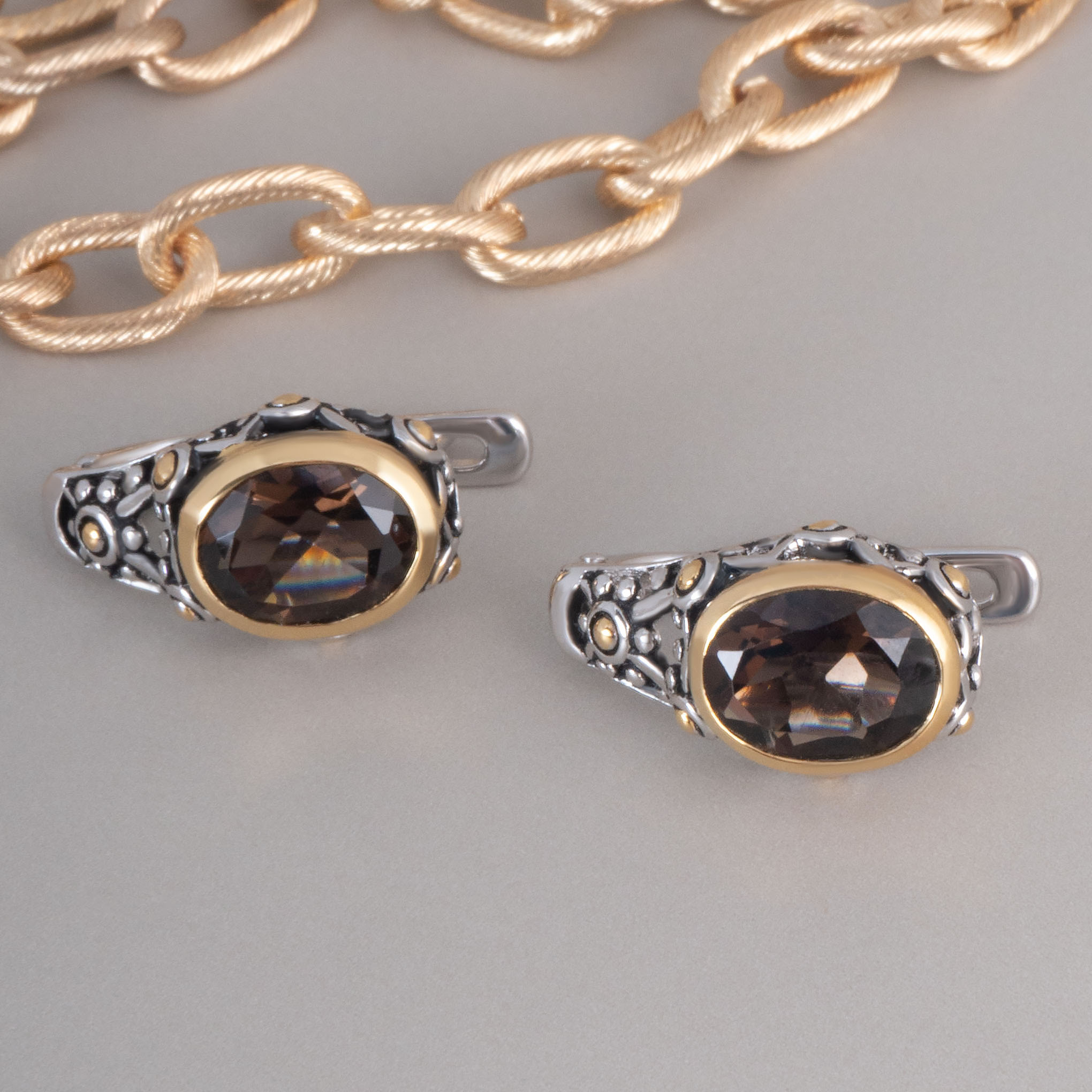 Серьги из серебра с раухтопазом (дымчатый кварц)